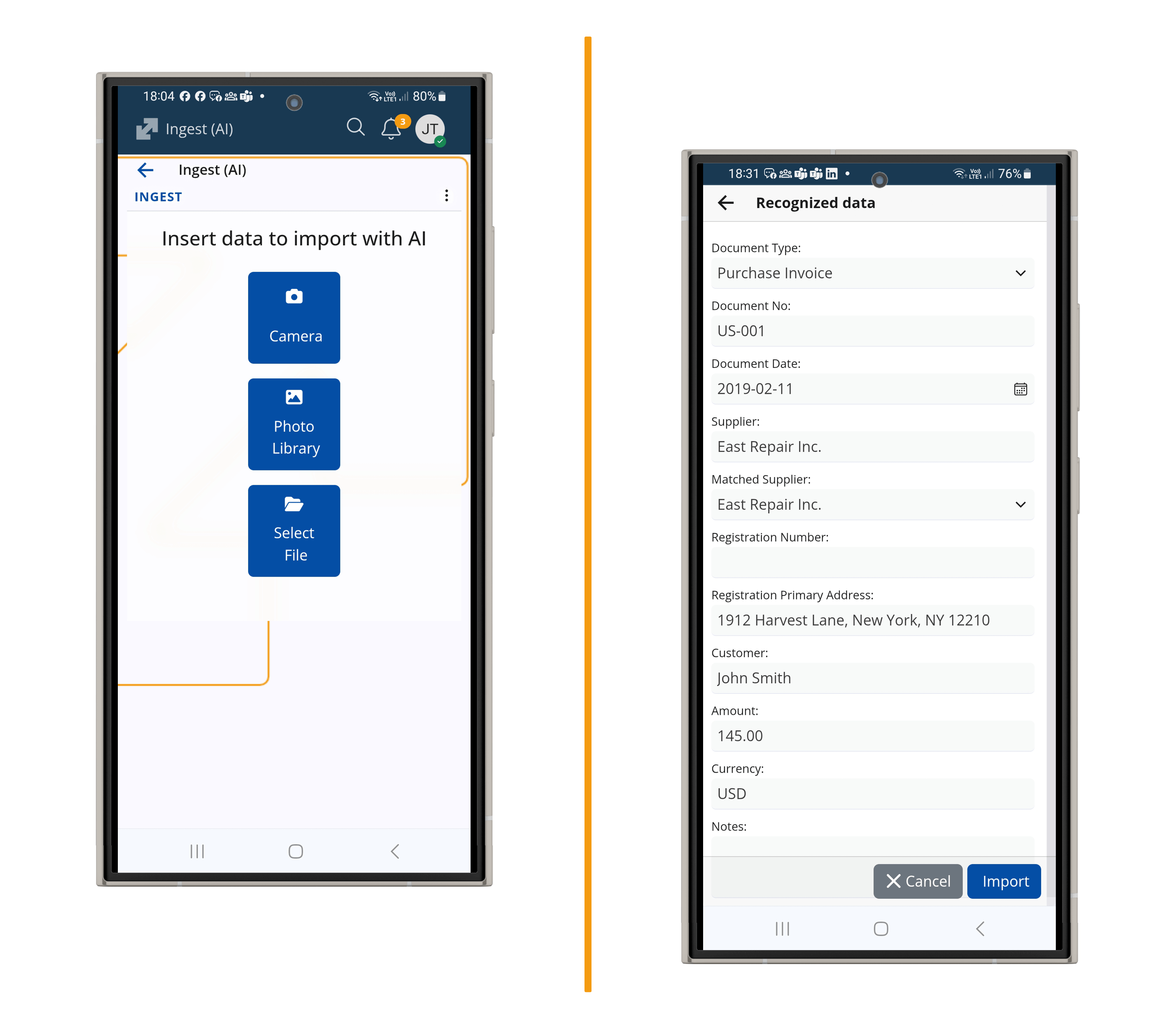 Ingest разчита данните от снимката на документа, разпознава ги и по тях създава напълно структуриран запис във формат на покупна фактура в ERP.net – неразличим от ръчно въведен.