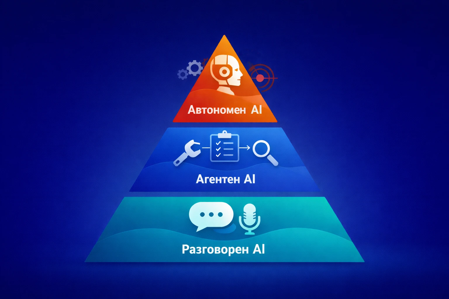 Изкуственият интелект не е един и същ навсякъде, накъдето погледнем. По-скоро представлява цял спектър от функционалности. Условно можем да приемем, че AI има три нива — разговорен, агентен и автономен — и това е важно, за да разберем къде се намираме днес, накъде вървим и какво да очакваме.